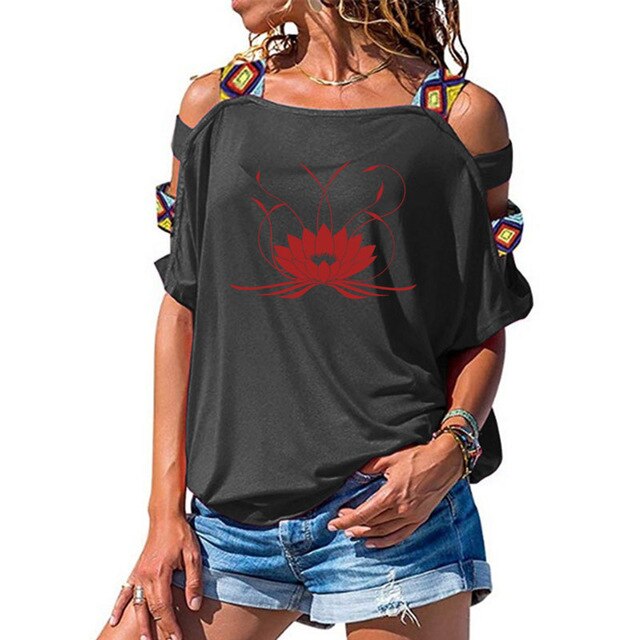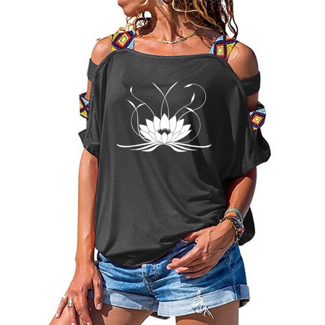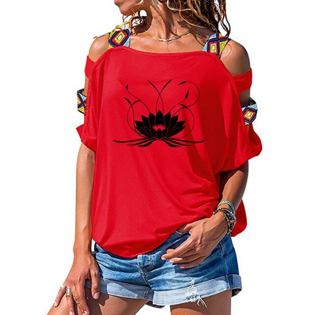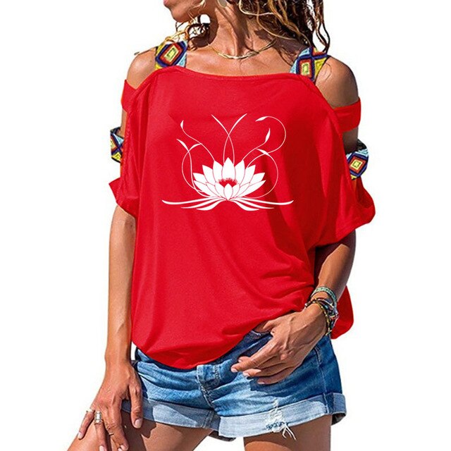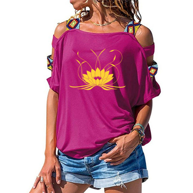 NEW 3d Mandala Lotus Women tshirt Cotton Casual Funny t shirt Girl Short Sleeve Sexy Hollow Out Shoulder Top Tee